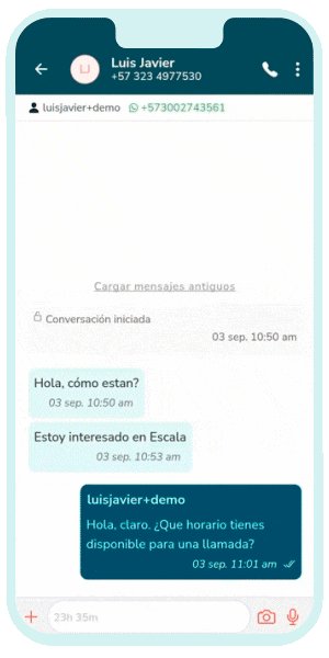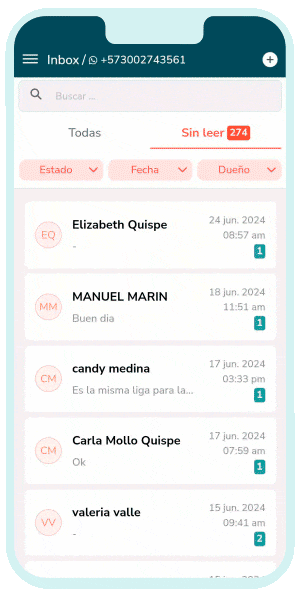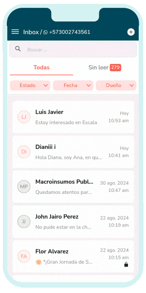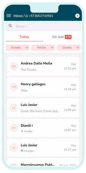 Con WhatsApp Inbox en la app móvil, puedes alcanzar un nuevo nivel de eficiencia en la gestión de relaciones con leads y clientes. Puedes recibir y responder mensajes sin importar dónde estés, ideal para vendedores que están en la calle visitando prospectos o clientes. También puedes coordinar a tu equipo, automatizar procesos claves y obtener datos valiosos que te ayudarán a optimizar tus resultados de marketing, ventas y servicios. ¡Todo desde tu celular!